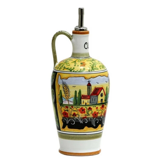 Colli umbri design is inspired by the “Verde umbria” central region of Italy. Umbria is an Italian region bordering tuscany, lazio and marche and often called the country’s green heart. Umbria is known for its medieval hill towns, dense forests and local cuisine, particularly foraged truffles, wines and extra virgin olive oil.This product masterfully depicts iconic umbrian landscape themes, featuring a masterfully hand painted design with an high gloss thick glaze.