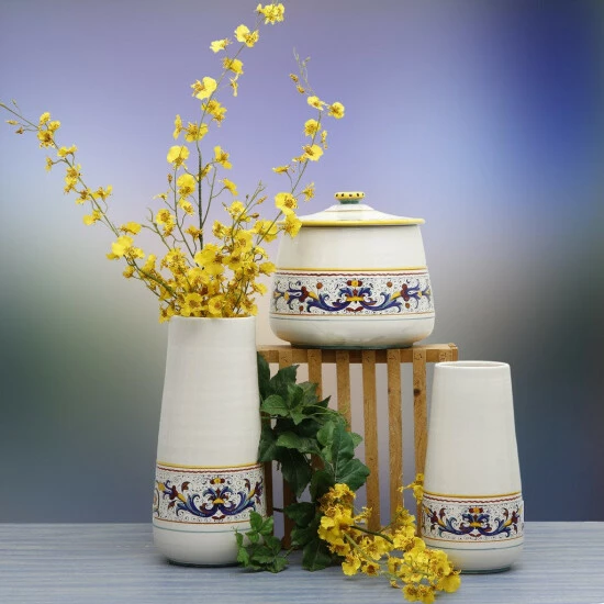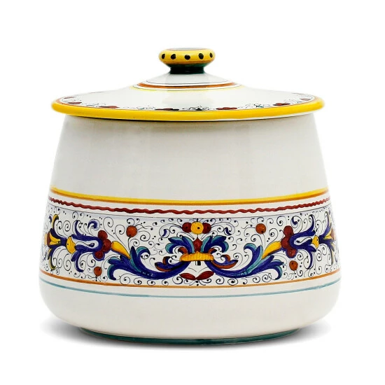 Ricco deruta collection: this is the true original version of the most celebrated deruta’s design, which traces its origins to the sixteenth century.Masterfully hand painted with the original royal blue, yellow gold, and emerald green, subtle color creating a brilliant elegance to bring royal elegance to your table.
