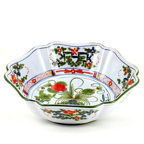 The faenza “garofano” pattern is a true italian classic from the renowned city of faenza.Faenza is by cultural tradition defined as city of the ceramics, lies 30 miles south of bologna in the north east part of italy, and while an important agricultural as well as an industrial centre, it owes its renown to ceramics.History has it that marco polo brought the garofano pattern from the orient in 1279 (along with the pasta).This is the only dinnerware collection we carry that does not have a “Pure white” background glazing due to the fact that this high-end collection is manufactured using the same color tones and design just like the original antique pieces and the background is a very (very) light blue.