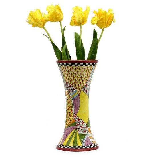 The Gaudi’ collection is part of our new ‘Artistica Contempo’ division where we feature exclusive and trendy designs while maintaining our traditional handcrafting and hand painted feature.Expertly hand-painted in Tuscany using traditional Tuscan earth tones in a surprising abstract design, this collection is inspired by the style of the Spanish architect, Gaudi.The design features the unique interlacing of hand-painted curvilinear shapes in a burst of saturated colors. This meticulously arranged design is trimmed with a modern black and white checkered pattern.No space is left unpainted on the Gaudi’ canisters and vases, with each piece fully decorated on all sides.