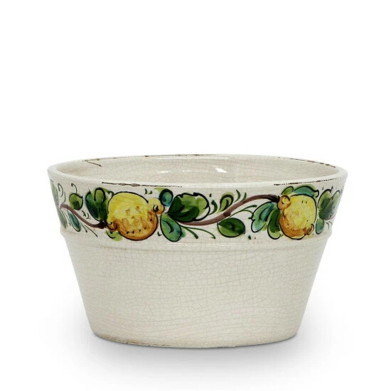 Introducing our all-new and exclusive Nuova Toscana Limoni collection inspired by the renowned Amalfi Coast lemons.Anyone that has ever visit the striking Italian Amalfi Coast, would immediately understand as there you may find lemons for sale practically everywhere and many stores feature a lemon-design theme being the typical fruit of the region.Each piece of this collection is masterfully hand painted. Double fired and fully glazed inside and out, they hold water and are great for arranging flowers or as tabletop.Designed for decorative use but suitable to hold fruits, nuts and of course plants and flower arrangements.
