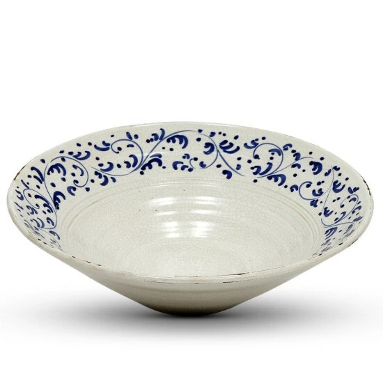 The nuova toscana volute collection is a brand new and artistica’s exclusive design of a transitional collection featuring traditional blue tuscan motifs (volute) depicted on fashionable and up-to-date vessels.Individually handmade and hand painted in montelupo, tuscany.Each piece of this collection is masterfully hand painted. Double fired and fully glazed inside and out, they hold water and are great for arranging flowers or as tabletop.Designed for decorative use but suitable to hold fruits, nuts and of course plants and flower arrangements.