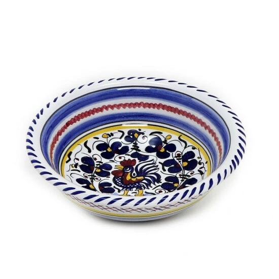 Orvieto green, red, blue collections: The orvieto (or orvietano) design is a very old and traditional pattern that originated during the renaissance in the hill-top town of orvieto italy. Truly one of italy’s most unique and interesting cities, orvieto has a charming medieval character, mainly due to its celebrated cathedral, a gem of gothic architecture that took more than 100 years to build. The ‘galletto’ (rooster) pattern’s main motif is a crowing rooster that symbolizes good wishes for blessings, prosperity and well-being. Hand made in deruta-italy. All deruta of italy products are lead and cadmium free.