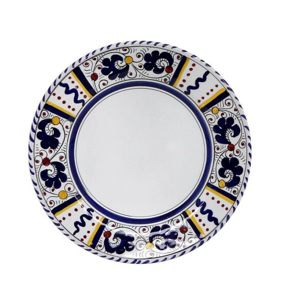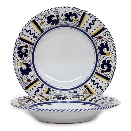 The orvieto (or orvietano) design is a very old and traditional pattern that originated during the renaissance in the hill-top town of orvieto italy. Truly one of italy’s most unique and interesting cities, orvieto has a charming medieval character, mainly due to its celebrated cathedral, a gem of gothic architecture that took more than 100 years to build. The ‘galletto’ (rooster) pattern’s main motif is a crowing rooster that symbolizes good wishes for blessings, prosperity and well-being. Hand made in deruta-italy. All deruta of italy products are lead and cadmium free.