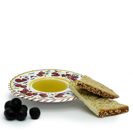 Orvieto green, red, blue collections: The orvieto (or orvietano) design is a very old and traditional pattern that originated during the renaissance in the hill-top town of orvieto italy.Truly one of italy’s most unique and interesting cities, orvieto has a charming medieval character, mainly due to its celebrated cathedral, a gem of gothic architecture that took more than 100 years to build.The ‘galletto’ (rooster) pattern’s main motif is a crowing rooster that symbolizes good wishes for blessings, prosperity and well-being.
