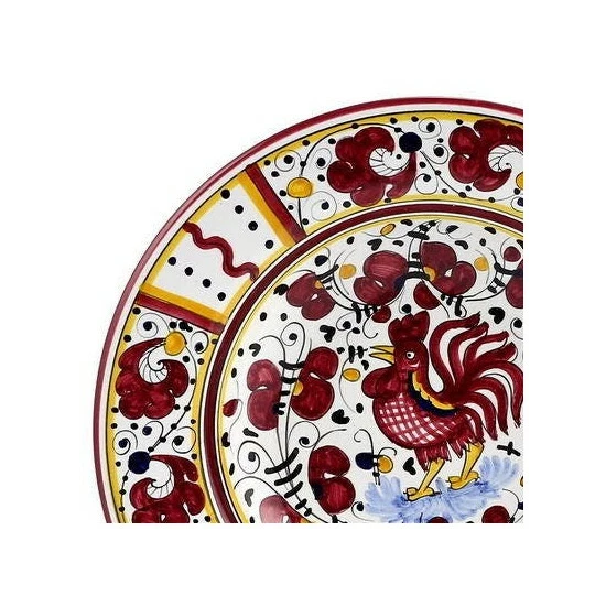 Orvieto rooster collections: the orvieto (or orvietano) design is a very old and traditional pattern that originated during the renaissance in the hill-top town of orvieto italy.Truly one of italy’s most unique and interesting cities, orvieto has a charming medieval character, mainly due to its celebrated cathedral, a gem of gothic architecture that took more than 100 years to build. The ‘galletto’ (rooster) pattern’s main motif is a crowing rooster that symbolizes good wishes for blessings, prosperity and well-being.The deruta of italy products are synonymous of high artistic value where faithfulness to colors, design and techniques is evident in their splendid and painstakingly production that also feature an impeccable double fired pure white thick under-glaze to assure product brilliance and durability.