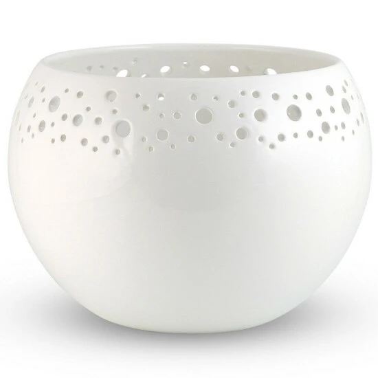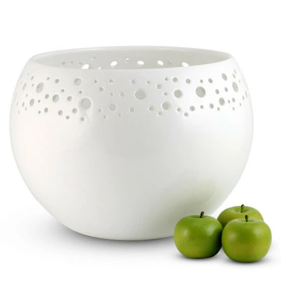 Featuring a simple and sophisticated modern designs painstakingly hand crafted individually piercing the holes that create this unique perforated design elegantly finished in a pure white glaze. The amazing characteristic of white accessory is that they fits so perfectly in any home decor; conversational pieces that stand out on rustic or traditional interior decoration and so perfectly fit within a contemporary theme.