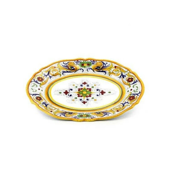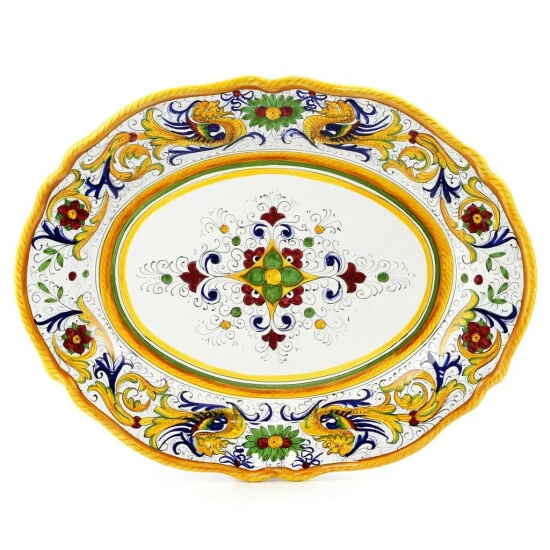Among the most popular and enduring italian majolica patterns, the classic ‘raffaellesco’ traces its origin to 16th century, and the graceful arabesques of raphael’s famous frescoes.The stylized dragon of the central motif was reputedly painted first by raphael, a master painter and architect of the italian high renaissance.Raffaellesco is a benevolent deity who bestows good luck and fair winds to seagoing merchants, thus the puffs of wind steaming from the dragon’s mouth.Our raffaellesco deluxe feature authentic top of the line quality products, created using the original designs and patterns.