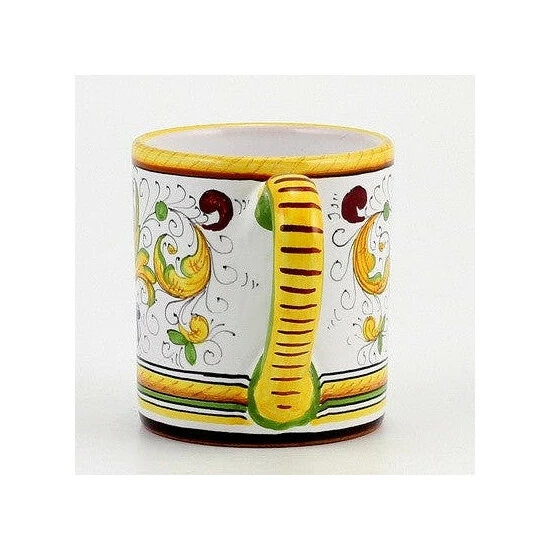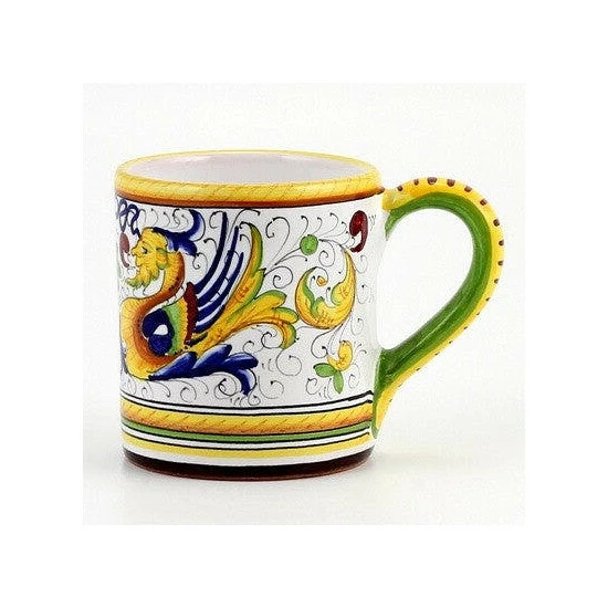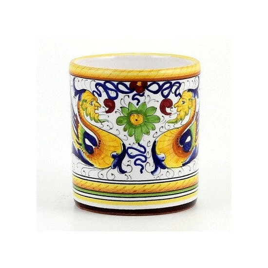 Among the most popular and enduring Italian majolica patterns, the classic ‘Raffaellesco’ traces its origin to 16th century, and the graceful arabesques of Raphael’s famous frescoes.The stylized dragon of the central motif was reputedly painted first by Raphael, a master painter and architect of the Italian High Renaissance.Raffaellesco is a benevolent deity who bestows good luck and fair winds to seagoing merchants, thus the puffs of wind steaming from the dragon’s mouth.Our Raffaellesco Deluxe feature authentic top of the line quality products, created using the original designs and patterns.Your full satisfaction is guaranteed on these stunning products!