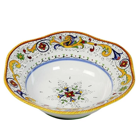 Among the most popular and enduring italian majolica patterns, the classic ‘raffaellesco’ traces its origin to 16th century, and the graceful arabesques of raphael’s famous frescoes.The stylized dragon of the central motif was reputedly painted first by raphael, a master painter and architect of the italian high renaissance.Raffaellesco is a benevolent deity who bestows good luck and fair winds to seagoing merchants, thus the puffs of wind steaming from the dragon’s mouth.Our raffaellesco deluxe feature authentic top of the line quality products, created using the original designs and patterns.