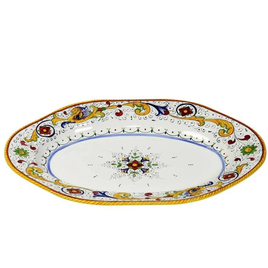 Among the most popular and enduring italian majolica patterns, the classic ‘raffaellesco’ traces its origin to 16th century, and the graceful arabesques of raphael’s famous frescoes.The stylized dragon of the central motif was reputedly painted first by raphael, a master painter and architect of the italian high renaissance.Raffaellesco is a benevolent deity who bestows good luck and fair winds to seagoing merchants, thus the puffs of wind steaming from the dragon’s mouth.Our raffaellesco deluxe feature authentic top of the line quality products, created using the original designs and patterns.