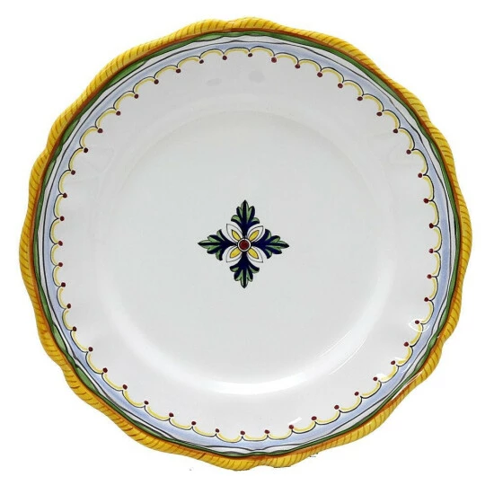 Raffaellesco lite: the ever popular raffaellesco designs simplified for a more undemanding look…Among the most popular and enduring italian majolica patterns, the classic ‘raffaellesco’ traces its origin to 16th century, and the graceful arabesques of raphael’s famous frescoes.The stylized dragon of the central motif was reputedly painted first by raphael, a master painter and architect of the italian high renaissance.Raffaellesco is a benevolent deity who bestows good luck and fair winds to seagoing merchants, thus the puffs of wind steaming from the dragon’s mouth.