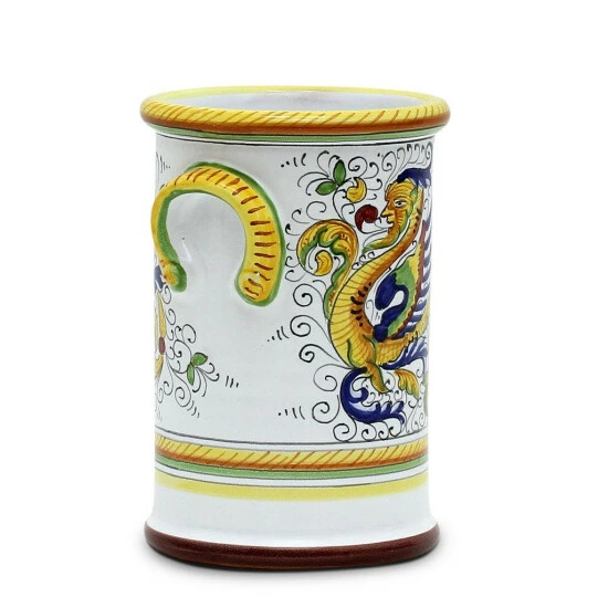 Among the most popular and enduring italian majolica patterns, the classic ‘raffaellesco’ traces its origin to 16th century, and the graceful arabesques of raphael’s famous frescoes.The stylized dragon of the central motif was reputedly painted first by raphael, a master painter and architect of the italian high renaissance.Raffaellesco is a benevolent deity who bestows good luck and fair winds to seagoing merchants, thus the puffs of wind steaming from the dragon’s mouth.Our raffaellesco deluxe feature authentic top of the line quality products, created using the original designs and patterns.
