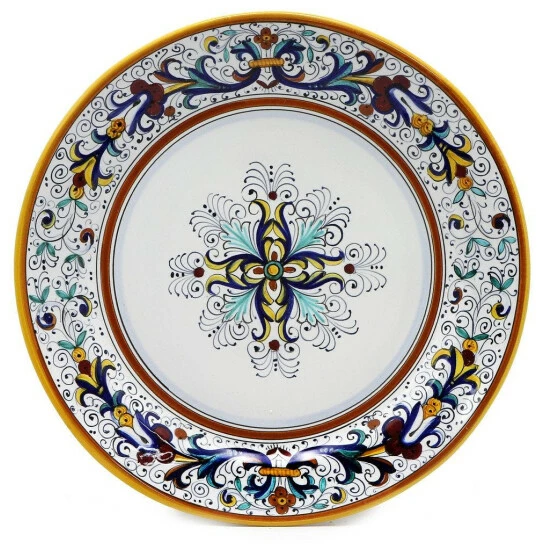 Ricco deruta collection: this is the true original version of the most celebrated deruta’s design, which traces its origins to the sixteenth century. Masterfully hand painted with the original royal blue, yellow gold, and emerald green, subtle color creating a brilliant elegance to bring royal elegance to your table. Hand made in deruta-italy. All deruta of italy products are lead and cadmium free.