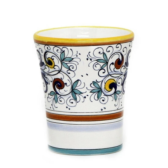 Artistica’s depiction of the traditional Ricco Deruta, is the true original version of the most celebrated Deruta’s design, which traces its origins to the sixteenth century Raffaello’s and Perugino’s frescos. The Ricco Deruta is Deruta’s most renowned design featuring colors such as royal blue, yellow gold, and emerald green, all traditional renaissance era colors that bring royal elegance to your table.Our Ricco Deruta Deluxe collection features authentic hand painted top of the line quality products, created using the original designs and patterns.Your full satisfaction is guaranteed on these stunning products!