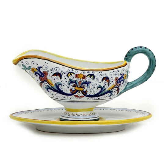 Ricco deruta collection: this is the true original version of the most celebrated deruta’s design, which traces its origins to the sixteenth century. Masterfully hand painted with the original royal blue, yellow gold, and emerald green, subtle color creating a brilliant elegance to bring royal elegance to your table. Hand made in deruta-italy. All deruta of italy products are lead and cadmium free.