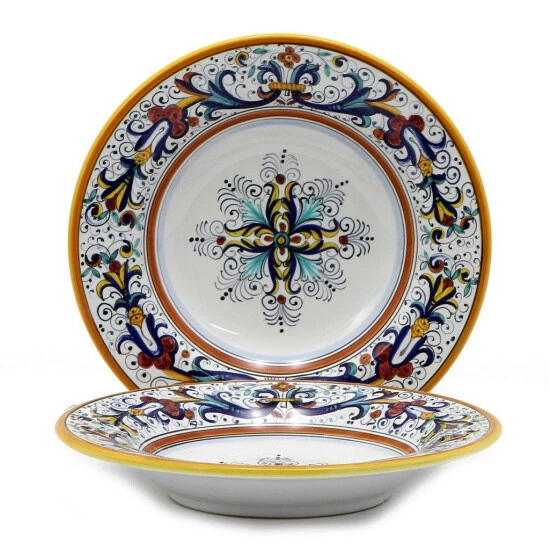 Ricco Deruta Collection: This is the true original version of the most celebrated Deruta’s design, which traces its origins to the sixteenth century.Masterfully hand painted with the original royal blue, yellow gold, and emerald green, subtle color creating a brilliant elegance to bring royal elegance to your table.