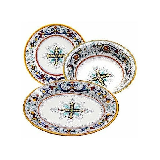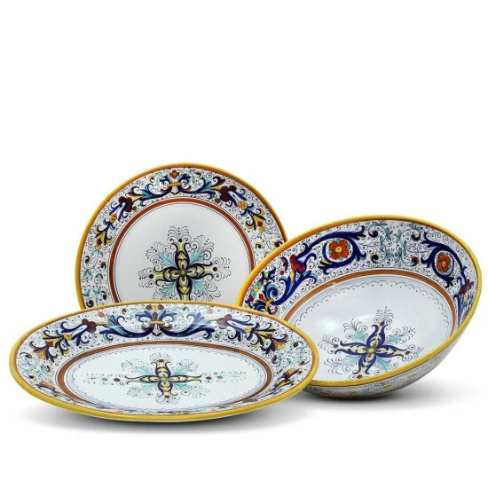 Artistica’s depiction of the traditional Ricco Deruta, is the true original version of the most celebrated Deruta’s design, which traces its origins to the sixteenth century Raffaello’s and Perugino’s frescos.The Ricco Deruta is Deruta’s most renowned design featuring colors such as royal blue, yellow gold, and emerald green, all traditional renaissance era colors that bring royal elegance to your table.Our Ricco Deruta Deluxe collection features authentic hand painted top of the line quality products, created using the original designs and patterns.Your full satisfaction is guaranteed on these stunning products!
