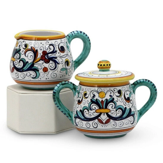 Ricco Deruta Collection: This is the true original version of the most celebrated Deruta’s design, which traces its origins to the sixteenth century. Masterfully hand painted with the original royal blue, yellow gold, and emerald green, subtle color creating a brilliant elegance to bring royal elegance to your table.