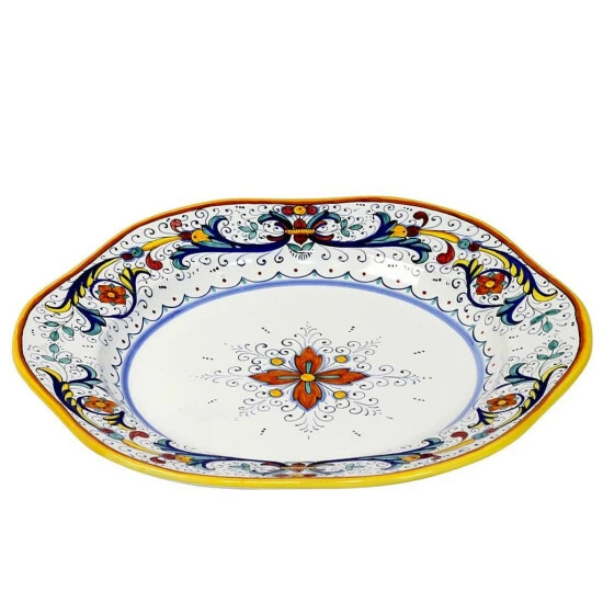 Ricco Deruta Collection: This is the true original version of the most celebrated Deruta’s design, which traces its origins to the sixteenth century. Masterfully hand painted with the original royal blue, yellow gold, and emerald green, subtle color creating a brilliant elegance to bring royal elegance to your table. Hand made in Deruta-Italy. All Deruta of Italy products are lead and cadmium free.