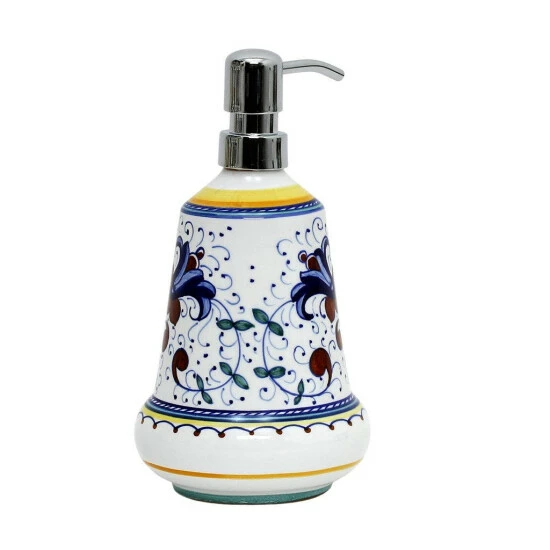 Artistica’s ricco deruta is the true original version of the most celebrated deruta’s design, which traces its origins to the sixteenth century. Masterfully hand painted with the original royal blue, yellow gold, and emerald green; traditional renaissance era colors to bring royal elegance to your table.