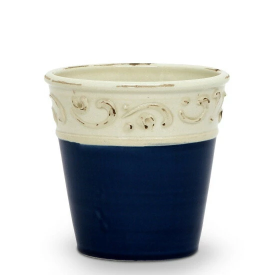 Introducing our all new scavo colore collection featuring small vase-cachepots with a bass relief top and a trendy solid color base. Artistica’s scavo look and finish is renown in our industry as the most realistic, even the experts will have to look twice to recognize the antiqued glazing imparted by the new ceramic technique used on this new collection as each piece is hand-finished, intentionally distressed to achieve the well-used look of a much older piece. Fully glazed inside and out, they hold water and are great for arranging or planting flowers or as tabletop decorative items.