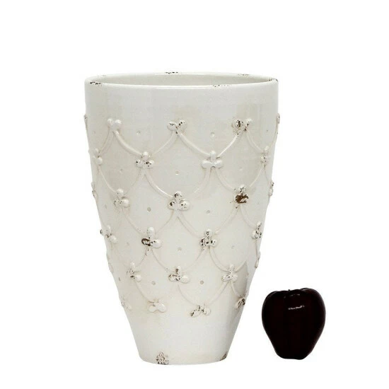 Introducing our all new Scavo Ricamo (embroidery) collection featuring fully hand thrown cachepot vases accented with bass-relief crisscross design a checked pattern created in the 1800’s now reproduced by our master Tuscan artisans!Artistica’s Scavo look and finish is renown in our industry as the most realistic, even the experts will have to look twice to recognize the antiqued glazing imparted by the new ceramic technique used on this new collection as each piece is hand-finished, intentionally distressed to achieve the well-used look of a much older piece.Fully glazed inside and out, they hold water and are great for arranging flowers or as tabletop.