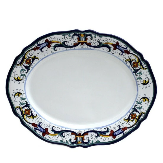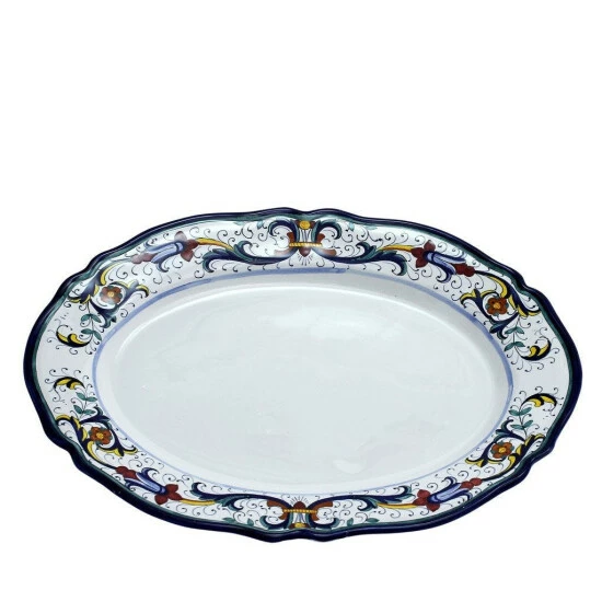 Vecchia deruta collection: (old deruta) – the authentic richer and more formal version of the renowned ricco deruta pattern. Scalloped rim plates featuring the traditional royal blue, yellow gold, and emerald green creating a brilliant elegance to bring royal elegance to your table. The vecchia deruta is a design inspired by the frescoes of the master renaissance artist raphael.